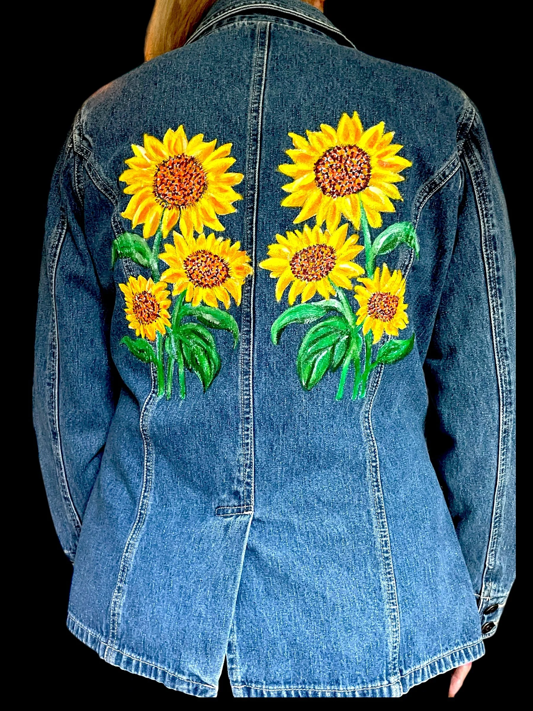 Hand-Painted Sunflowers Denim Blazer